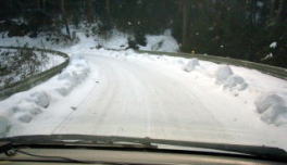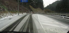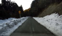 今日は午後から大川へ材料仕入れに。峠道の雪が溶けて行こうと思ったのだが、このままでは今月中に行けそうにないと思われたので、本日決行。交通情報通り、峠は積もった雪でアイスバーンになっていた。