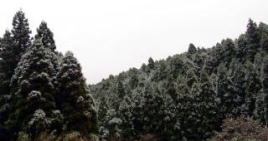 天気予報では午前中傘マークが付いていたので山歩きを諦めて、作業に精を出していたら、朝から好天気。悔しいので昼食を早めに済ませて雷山千如寺上の雷山林道へ車で雪見物に行く。ココは雷神社もあり正月にはぴったりである。昨年からの雪と昨日の雪が重なって積雪も20pを超え愛車の底を打つようになったので、途中で引き返す。本格的な4WDじゃないと走破は無理のようだ。持ち主に似て座高の方がが高い車なのだ。その帰り道???な生物を発見。