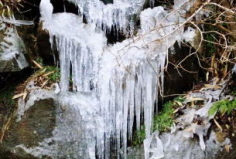 久しぶりに大川へ材料を仕入れに行く。途中峠を抜けて行くのだが、頂上付近でツララを発見した。