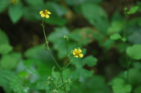 身も心も染まってしまいそうな緑のシャワーが降り注ぐのだ。おまけにと言うか、この季節ならではと言うか、蝉時雨のシャワーまで降り注いでくる。数匹の蝉だとそこそこ風情もあるのだが、数十匹の蝉の合唱となると、風情を通り越して、まるで騒音である。「ジージー、ジャージャー」と、濁音が上から落ちてくる。 腹も一杯になり昼寝をしていたのだが、蝉の声があまりにうるさくて早々に下山開始。時期のせいなのか山野草がいつもより少なく感じられた。それでも何点かパチリパチリと撮ることができた。 久しぶりの登山だったが、リフレッシュ出来、これからは月に1〜2回は山歩きしようと緩く心に誓ったのであった。
