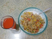 その具材で作った無茶うまチャーハン +野菜不足対策の人参ジュース |