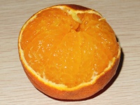美味しいが、渋皮の無いミカン 甘皮を剥くと果実なので驚く |