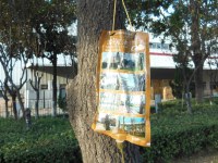 街路樹の幹に穴をあけて点滴 猛暑対策なのかな?? |