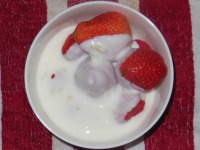 ヨーグルトぶっかけイチゴ 今回のイチゴは少々ハズレ |