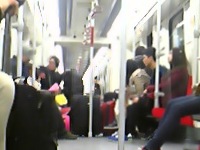 広州地下鉄の中の様子 完全に通路をふさいだ荷物 |