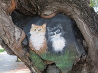 街路樹の切り口にネコの絵 場所が場所だけにフクロウに見えた |
