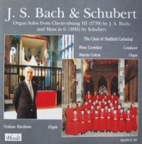 Peter Crowther 1.Prelude in E flat, BWV 552/1(Bach) 2.Kyrie: God, Holy Ghost, BWV 671(Bach) 3.Kyrie eleison (Massin G)(Schubert) 4.Gloria (Massin G)(Schubert) 5.These are the holy Ten Commandments, BWV 678(Bach) 6.Credo (Massin G)(Schubert) 7.We all believe in one God, BWV 680(Bach) 8.Sanctus (Massin G)(Schubert) 9.Benedictus (Massin G)(Schubert) 10.Our Father, who art in heaven, BWV 683(Bach) 11.Agnus Dei (Massin G)(Schubert) 12.Duet in F, BWV 803(Bach) 13.Eucharist: Pie Jesu (from Requiem)(Faure) 14.Fugue in E flat, BWV 552/2(Bach) イギリスのシェフィールド大聖堂聖歌隊(現在は少女聖歌隊もあるそうな)によるレコーディング。イギリスの聖歌隊がドイツ系の曲を歌うのが嬉しいので手にとってみた。バッハのオルガン独奏曲と、シューベルトのミサ曲D.167が収録されており、ミサの進行状態に合わせたのかもしれないが、ミサ曲の合間にオルガン独奏が入るという構成。第一声から、予想どおりイギリス系の高い透明なボーイソプラノ。全体的には悪くないが(ドへたではないが)、高音が若干裏返ってばらつき気味で、テンポもゆっくり目で躍動感に欠けるのは否めない。伴奏がオケでなくオルガンであること、本来ソロの部分も合唱で歌われることなども、物足りなく感じられる要因か。可もなく不可もなく、といった感じ。13曲目にフォーレのレクイエムからピエ・イエス。透明な合唱で無難に歌われる。 (by Emu) 2007/03/09(Friday)up |