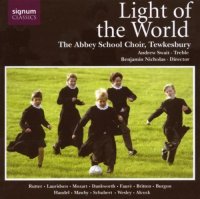 LIGHT OF THE WORLD (Signum/SIGCD068) The Abbey School Choir, Tewkesbury, Andrew Swait - treble(1.2.3.5.6.7.8.9.11.12.15.17.21), Thomas Ooi - treble(5), Tom Hewlett - treble(10), Benjamin Nicholas - Director Recorded at Tewkesbury Abbey, October 2005 1.Eternal source of light (Handel) 2.Sanctus (Alcock) 3.Nunc Dimittis (Burgon) 4.Light of the world (Dankworth) 5.I waited for the Lord (Mendelssohn) 6.How beautiful are the feet (Handel) 7.Blessed be the God and Father (S.S. Wesley) 8.Ave Maria (Schubert) 9.The Angels' Goodnight (Schumann) 10.Long since Egypts plenteous land (C. Hubert H. Parry) 11.Brother James' Air (Trad. arr. M.Archer) 12.Balulalow (Britten) 13.This little babe (Britten) 14.The Lord bless you (Rutter) 15.Pie Jesu (Faure) 16.Ave verum corpus (Mawby) 17.I Would be True (Londonderry Air) (Traditional) 18.Ave verum corpus (Mozart) 19.Ubi caritas et amor (Lauridsen) 20.Gaelic Blessing (Rutter) 21.Amazing Grace (Traditional) 半分がAndrew Swaitのソロという事で、ほぼソロCDみたいなもの。期待を持たれていたんだろうなあ。当時10歳で声質こそ時折初いものを感じるけど、歌いっぷりは大人顔負けの風格をそなえている。翌年2006年の”Young Chorister of the Year”のファイナリストのひとりでもある。が、それをおいても、バーゴンやブリテンの1曲のために、トランペットやハープの伴奏も準備している念の入れようで、滑らかな流れにのるような曲が多くて魅力的。10番は普段”Dear Lord and Father of mykind”で歌われている聖歌。中盤以降聞き慣れないメロディが入って来たり伴奏なしのコリスターのコーラスになったり、原曲はこうだったのかもしれない。”Brother James' Air”の4コーラス目はAndrewがひとりデスカントを演じている。タイトルにもなっている”Light of the world”、良い曲ですなあ。 Dankworthは 本来ジャズの作曲家だったように思うけど、この曲、歌うと意外に難しい。自分の鼻歌基準で図ってはいかんのですけどね。心が疲れた時に小さなボリュームで聞いても癒されそうなCD。ジャケットはローブのままでサッカーボールを追う少年たちが写っているいるが、制服のグレーのスラックスが見えている子もいれば、ひざっ小僧の見えている子もいまして。ひざっ小僧の方は、短い半ズボンなんだろうね。どちらにしても元気でよろしいデス。ジャケットの雰囲気と中身もアンマッチで、これもよろしい。 (by Nao) 2013/02/01 fri up |