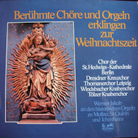 Stille Nacht, heilige Nacht (STEREO 20 22627-1) Seite 1 1.Jetzt fangen wir zum Singen an.....3:44 2.O lieber Hauswirt mein.....1:59 3.Ein grosse Freud verkund' ich euch.....2:45 4.Murztaler Engelruf.....1:27 5.Auf, ihr Hirtenleut.....1:47 6.Potztausend mal Tausend.....1:25 7.Liebe Hirten, gehts mit mir.....2:04 8.Dos allerschonste Kindl(Weihnachtsjodler).....3:51 9.Stille Nacht, heilige Nacht.....3:36 Seite 2 1.Der Engel des Herrn.....4:01 2.Da drausst auf da grean au.....3:41 3.Dort oben am berge weht kuhlender wind.....4:03 4.Es hat sich halt auftan das himmlische Tor.....1:31 5.Krumperhax Martinsbua.....2:30 6.Andachtsjodler.....1:43 7.Still,still,still,weil's Kindlein schlafen will.....2:25 8.Heissa Buama.....2:56 器楽伴奏を極力抑えて合唱そのものを楽しめる盤なので、高額プレーヤーで聴きたい盤です。うちのはお安いポータブルなのが残念すぎます。ソロやデュエットで聴こえてくる声は(私の耳には)少々幼く、高音部に伸びやかさが足りないように感じ、変声前よりも、変声後の男声パートが魅力に聴こえてきます。変声前の団員君の演奏としては、いくつかのデュエットがこの録音時のメンバーの声の特長を活かしていると思います。 私のプレーヤーの再現力が原因だと思いますが、この盤の印象としては変声前のパートの声が委縮しているように聴こえました。高額セットで聴きたいものです。最初に聴いたのはCDだったのですが、そのときの印象は地味だけれどもソロも合唱もとても上手な印象で好感が持てました。 それにしてもクリスマスに関する曲というのは、たくさんあるものなのですね。 *CD(KOCH International 321 442)で再販されています。 紹介文は、CDのページでWingさんが書いています。そちらの方をお奨めします。 (by Hetsuji 2019.10.22 FRI. up) |