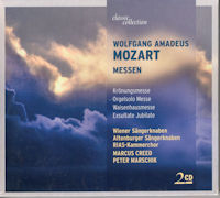 WOLFGANG AMADEUS MOZART MESSEN Krönungsmesse Orgelsolo Messe Waisenhausmesse Exsultate Jubilate Wiener Sängerknaben Altenburger Sängerknaben RIAS-Kammerchor Marcus Creed PETER MARSCHIK CD1 Messe C-Dur KV 317,, Krönungsmesse" Messe in C-Dur KV 317 "Krönung" [1] Kyrie [2] Gloria [3] Credo [4] Sanctus [5] Benedictus [6] Agnus Dei Benjamin Schmidinger, Sopran/soprano. Albin Lenzer, Alt / contralto Michael Knapp, Tenor / tenor. Ernst Jankowitsch, Bass/bass WIENER SANGERKNABEN. Chorus Viennensis STUTTGARTER PHILHARMONIKER. PETER MARSCHIK (Dirigent/conductor) [7] Exsultate, jubilate KV 165 (Motette. Motet). [8] Kirchensonate C-Dur KV 328 Kirchensonate in C-Dur KV 328 [9] Laudate Dominum (aus: Sonntagsvesper, KV 321) GABRIELE FUCHS, Sopran / soprano ROBERT KUPPELWIESER, Orgel / organ CAMERATA ACADEMICA SALZBURG. ERNST HINREINER (Dirigent/conductor) Messe C-Dur KV 259,„Orgelsolo Messe" Messe in C-Dur KV 259 "Orgelsolo" [10] Kyrie [11] Gloria [12] Credo [13] Sanctus [14] Benedictus [15] Agnus Dei [16]Dona nobis pacem Lothar Stadler, Sopran/soprano. Michael Hahn, Alt / contralto Gernot Schimmel, Tenor / tenor. Gernot Reininger, Bass / bass ALTENBURGER SÄNGERKNABEN SINFONIETTA LINZ. Eduard Claucig, Orgel PETER HRNCIRIK (Dirigent) CD2 Missa solemnis c-Moll KV 139 (47 a) „Waisenhausmesse“ Messe in c-Moll KV 139 (47 a) „Waisenhaus“ [1] Kyrie [2] Gloria [3] Credo [4] Sanctus [5] Benedictus [6] Agnus Dei [7] Misericordias Domini KV 222 (205 a). [8] Inter natos mulierum KV 72 (74f) [9]Sancta Maria, mater Dei KV 273 [9] [10] Venite populi KV 260 (248 a).. [11] Ave verum corpus KV 618 Celina Lindsley, soprano. Gabriele Schreckenbach, contralto. Werner Hollweg, tenor. Walton Grönroos, tenor. RIAS-KAMMERCHOR RADIO-SYMPHONIE-ORCHESTER BERLIN MARCUS CREED (DIRECTOR/MODER) ここに収録されている戴冠ミサは、いつ録音されたものなのだろう? ソプラノくん、92年に来日したときはソロはなかったと思う。写真を撮らせてもらった思い出がある。そうして私にとって永遠のソリストであるクナップと、エルンストが大人のソリストに変貌している。それだけでなんとも言えない感情に包まれているのに、WSK的クリアな声が、キレイ。ソロも合唱も。ミヒャエルが歌っている、エルンストが歌っていると、変声後の演奏を聴きながらも、アタマの中の映像は、当時の変声前の少年たちのまま。 戴冠ミサは、オペラチックに旋律が麗しいし、特にもアニュス・ディのベンジャミンの長いソロに風情があるし、そこに往年のソリストたちの声が交錯するところにこの録音の価値がある。戴冠ミサの部分だけでも、この盤欲しすぎる。 ミサの間のソプラノソロ曲を取った女声はモーツァルト歌唱の名手なんだそうです。 さて、ソロが目立つ曲のアルテンブルクですが、なんとはなしに音がクリアです。こういう言い方しては申し訳ないけれど、WSKみたいな音。ソリストもなかなかの出来栄えです。録音年はいつでしょう? 同年の録音をチェックする必要がありそうです。アルテンブルクはもっと落ち着いた声だと思っていました。地に着いた声ですが、音が華やいでいます。 KV139は大人のChoirです。 (by Hetsuji 2026.01.17 SAT up) |